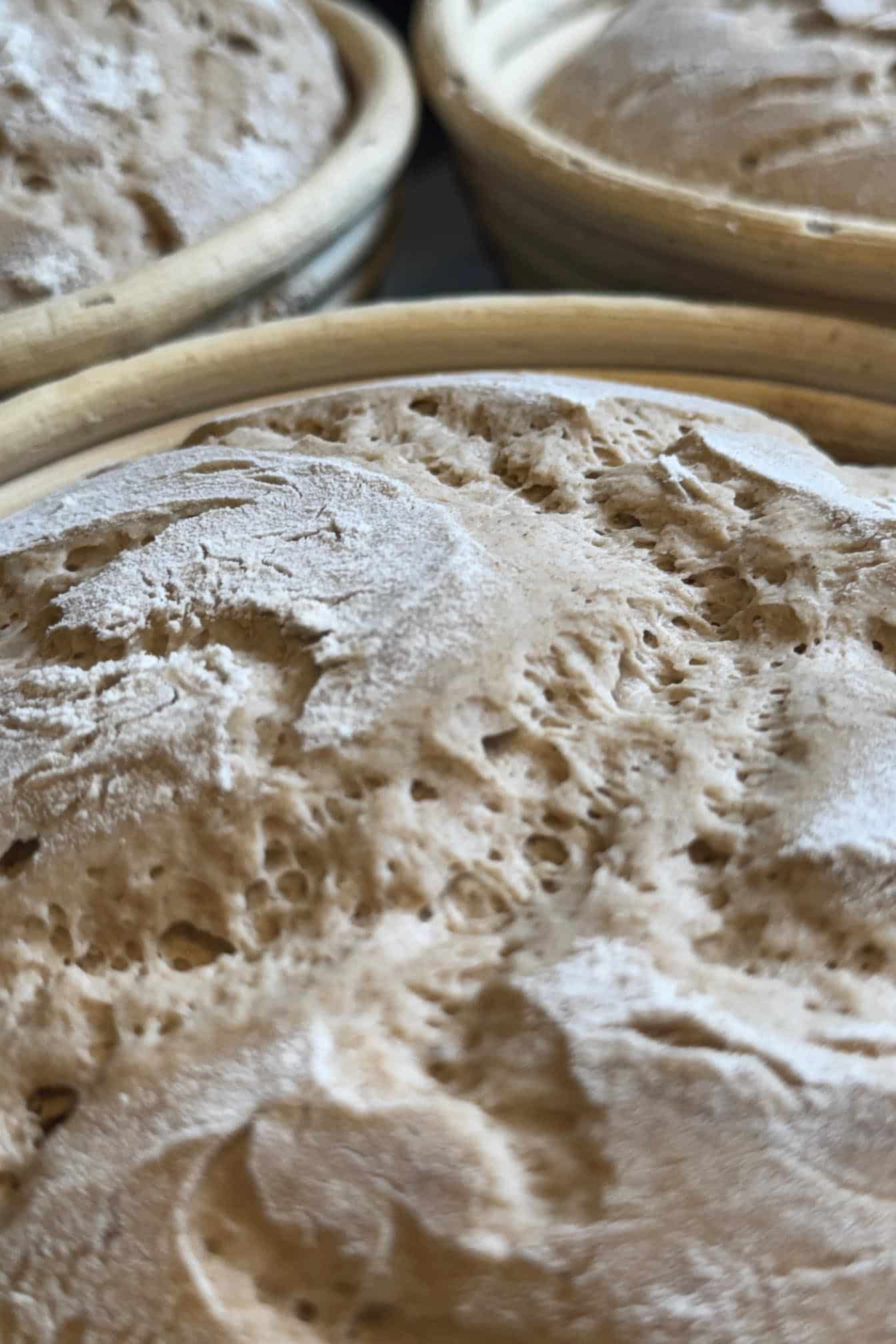 3. Aus dem Teig drei Laibe formen und nochmals kurz gehen lassen (am besten in Brotkörben, ca. 15 Minuten).